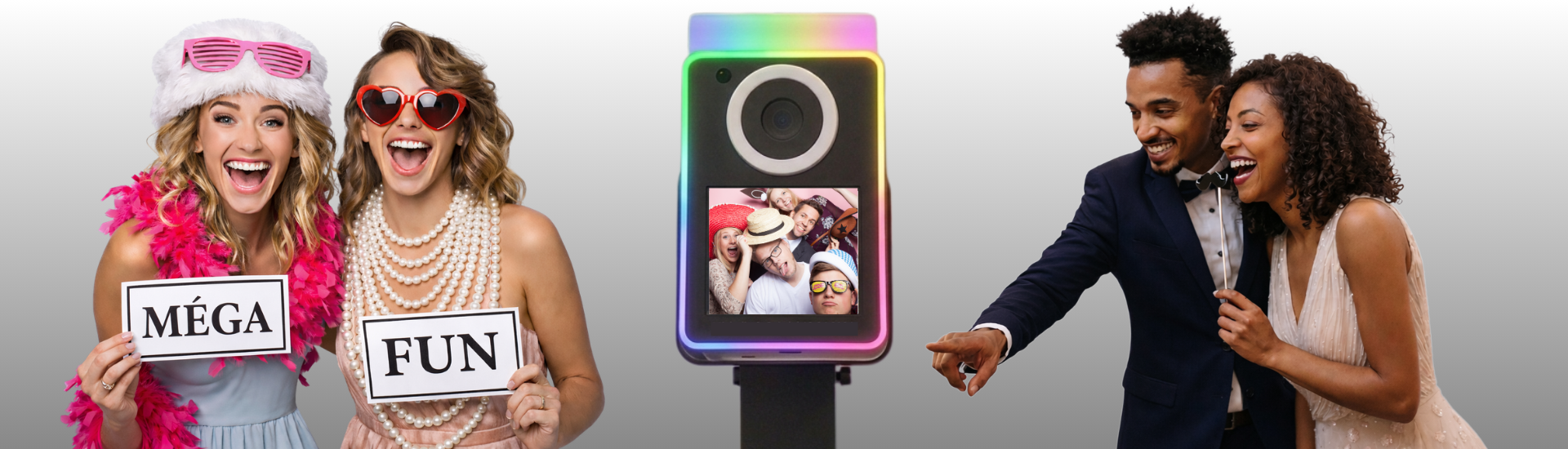 Synonyme de qualité, Méga Fun propose un photobooth muni d’un éclairage professionnel optimisé afin que la capture des photos soit d’une clarté impeccable.